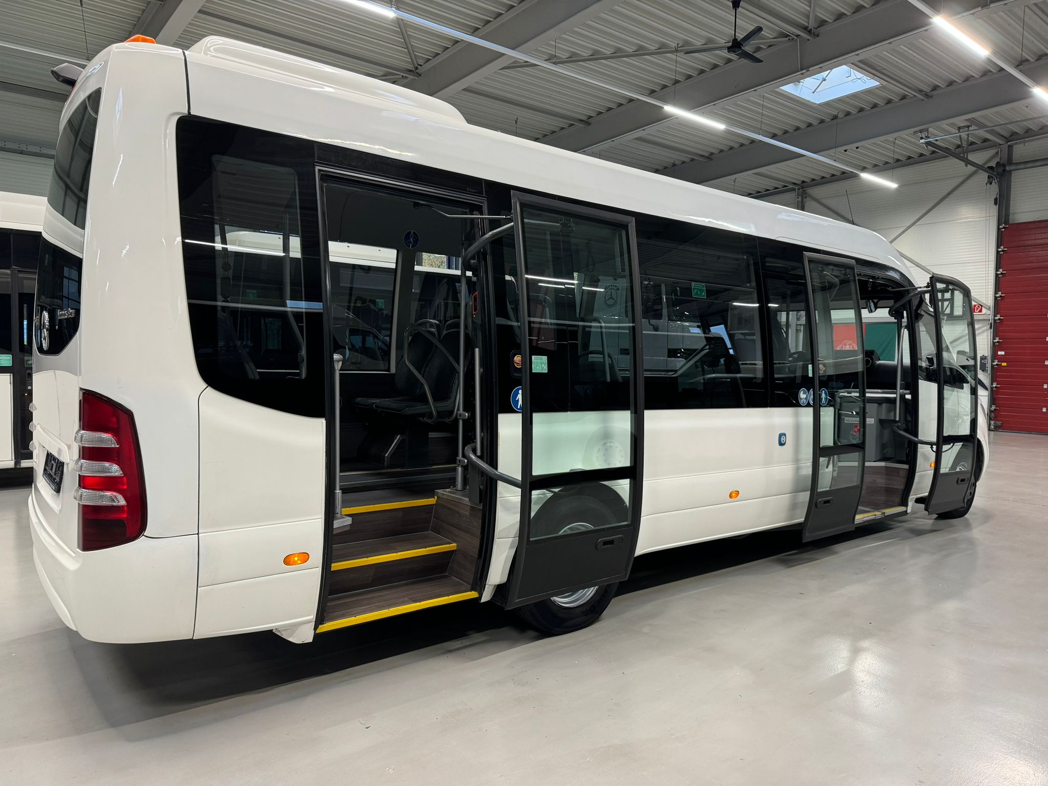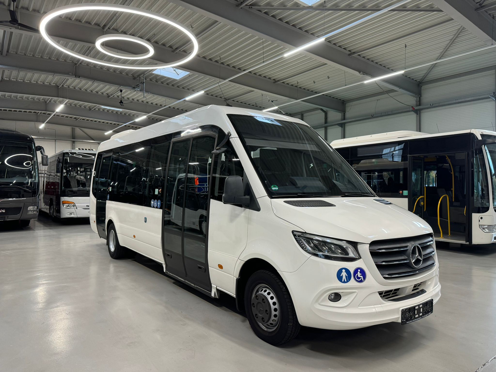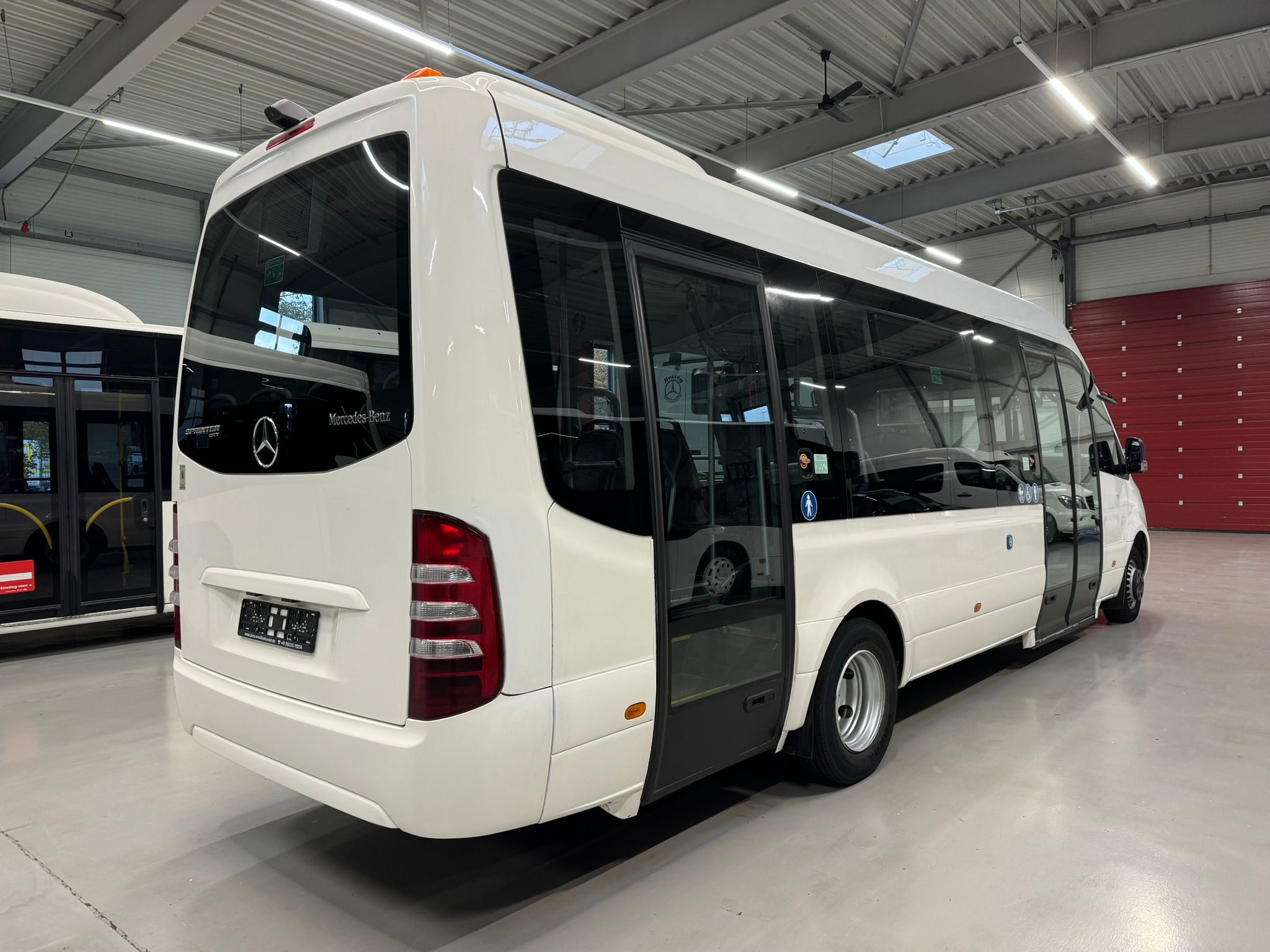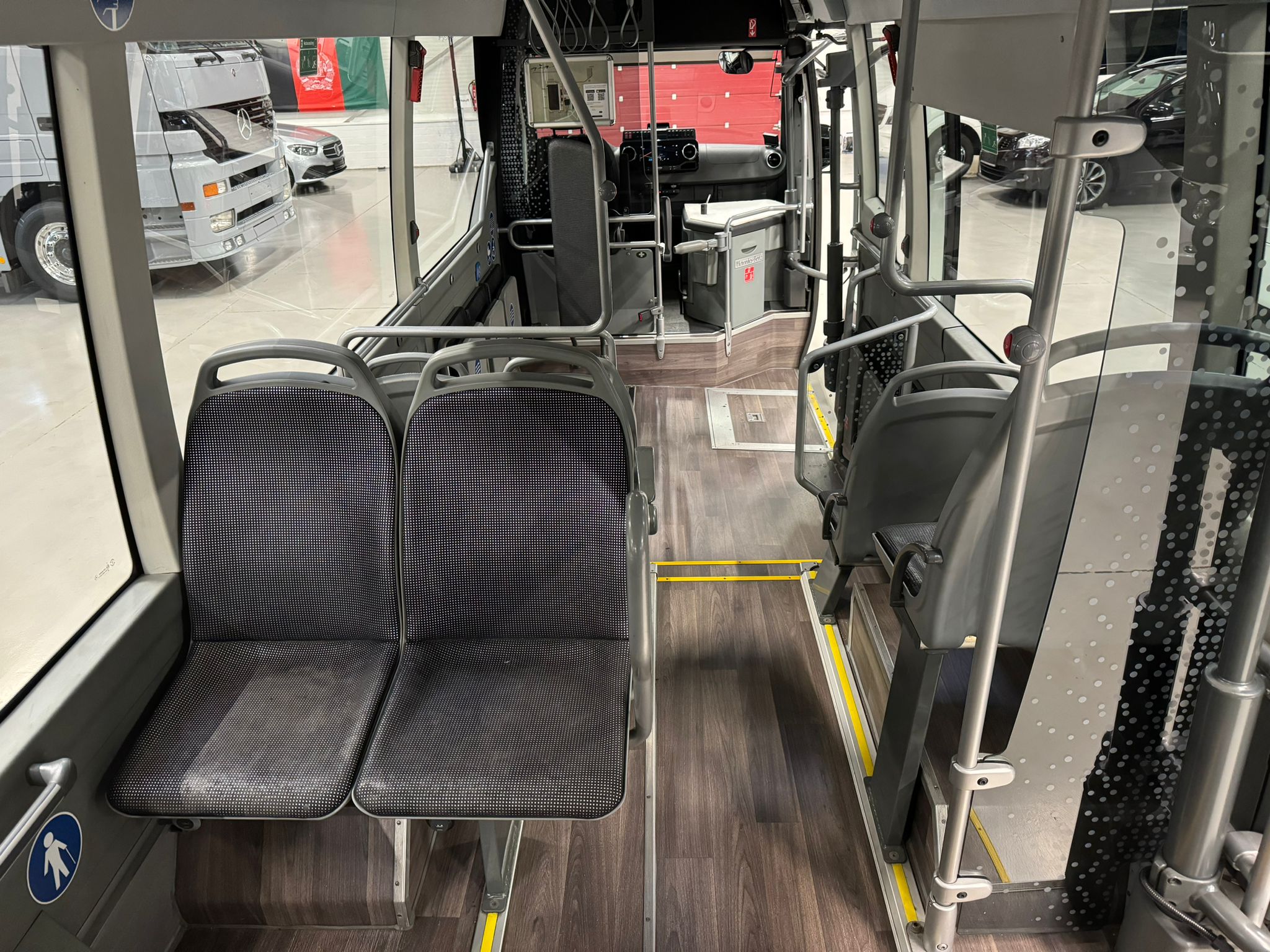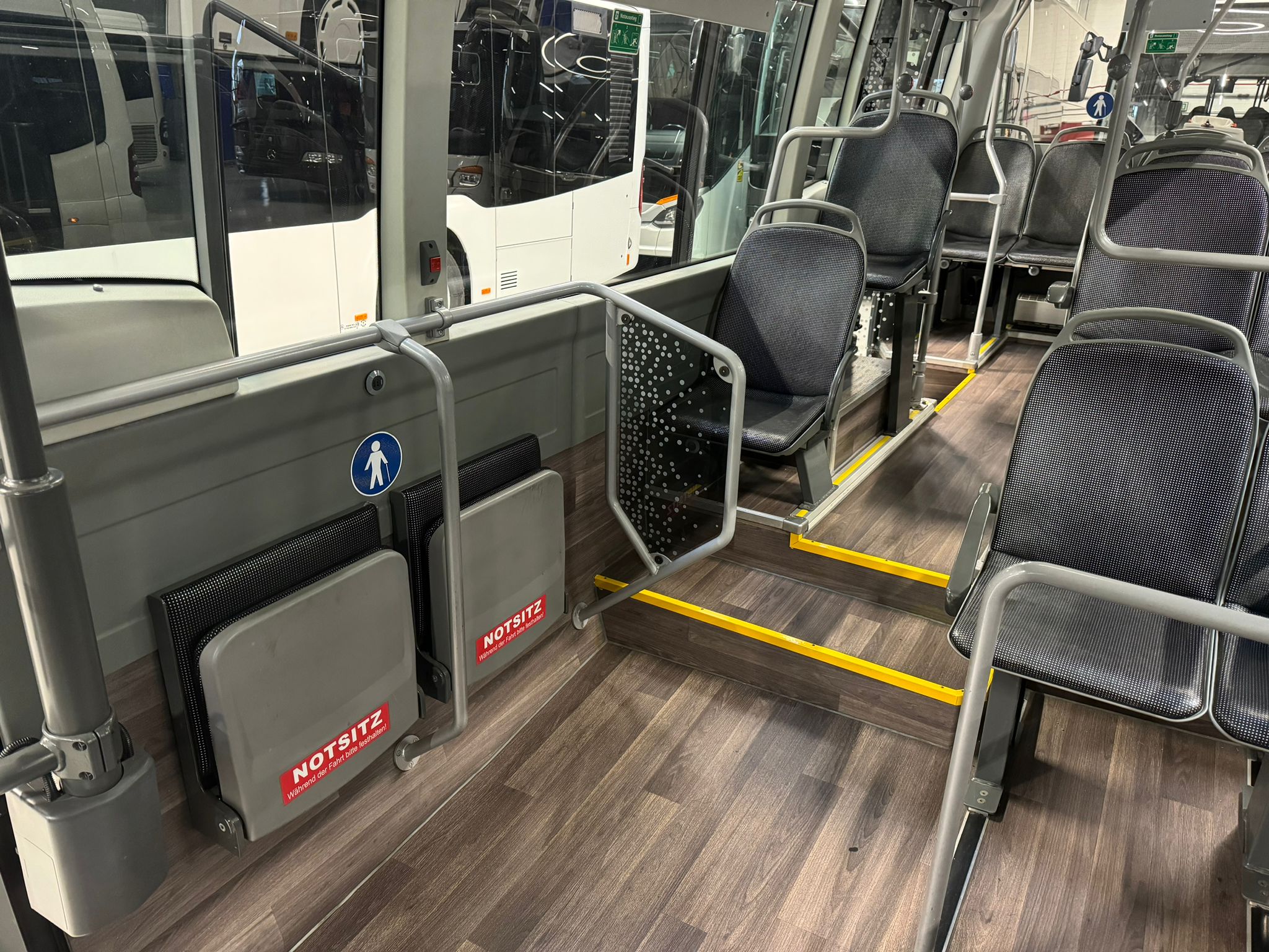 14 City Star Sitze +1 + 3 Klappsitz, 20 Stehplätze, ABS,ASR,Retarder,Telma, Fahrer- und Fahrgastraumklimaanlage, Standheizung, LAWO-LED-Matrax, Radio/CD, Rollstuhlplatz, manuelle Rampe, Rückfahrkamera, Haltewunschtaste, USB-ANschlüsse an allen Sitzen, Panoramaverglasung, TFT-Monitor, Tür 1: außen doppelflügelig, Tür 2: außen einflügelig,