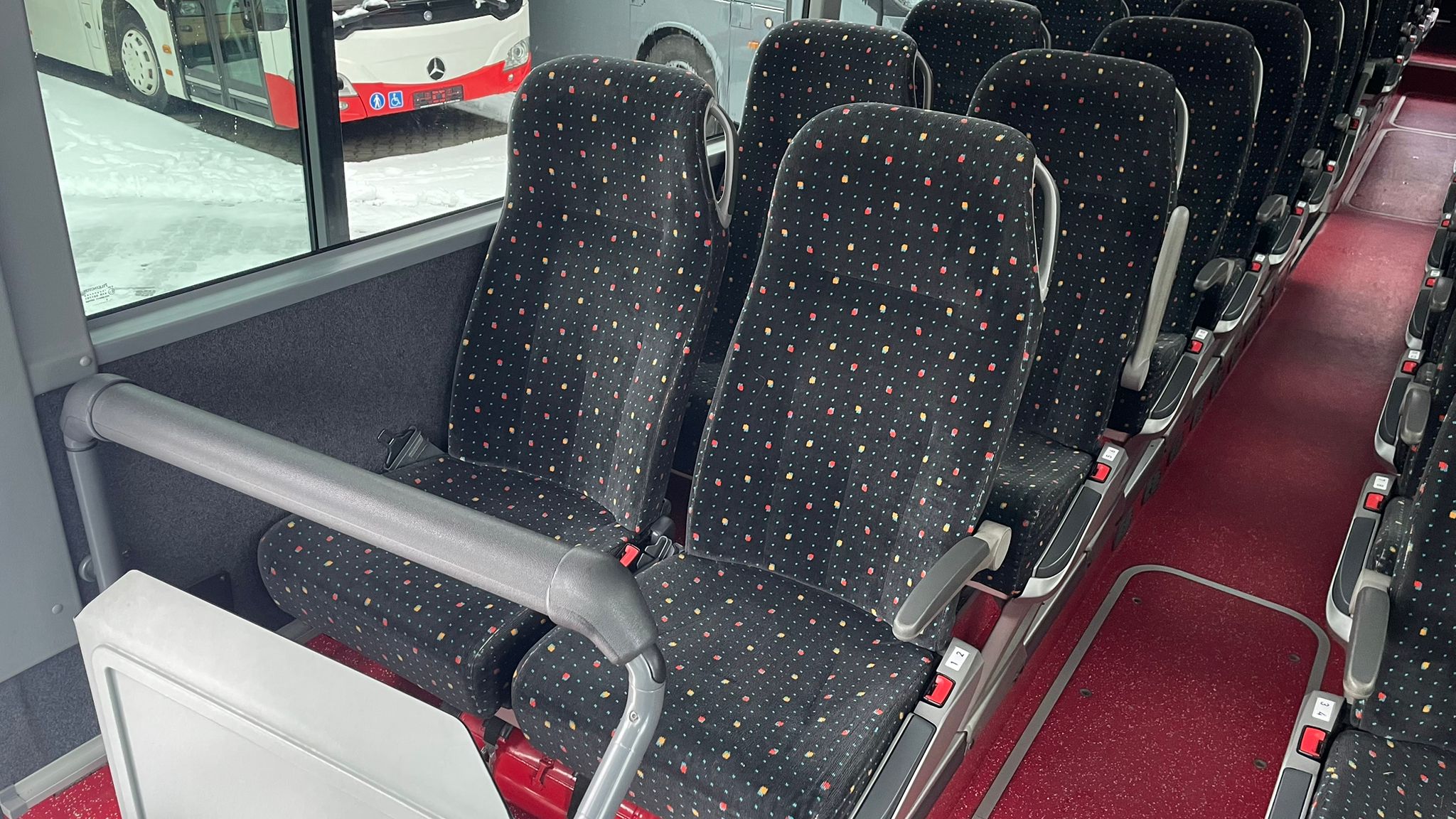 56 Sitze mit Gurt/ 22 Stehplätze, pneumatische Einstiegstür, ABS, ASR, Retarder, Klimaanlage, elektrische Fensterheber, Kneeling, Hebe-Senkanlage, Webasto Standheizung vorwählbar, Luftfederung, Gorba-Matrix, Kinderwagenstellplatz, abnehmbares Podest, elektrisch verstell-und beheizbare Außenspiegel, 2. Tank, 2 elektr. Dachluken, elektr. Frontscheibenrollo, Hutablage, Haltewunschtasten, Radio/Kassette, 1 Mikrofon, Zentralverrieglung, Überwachungskamera