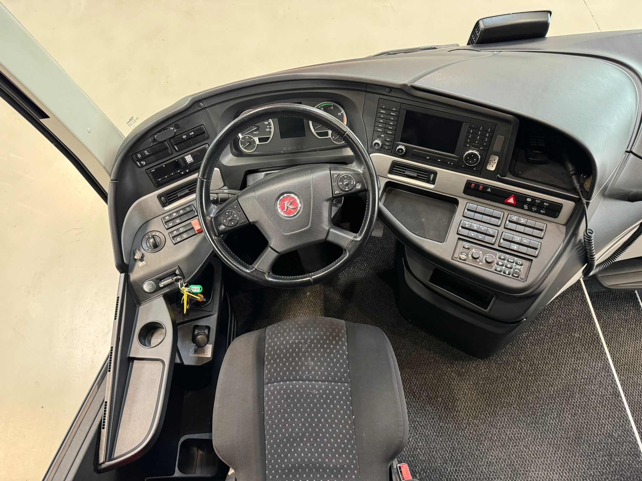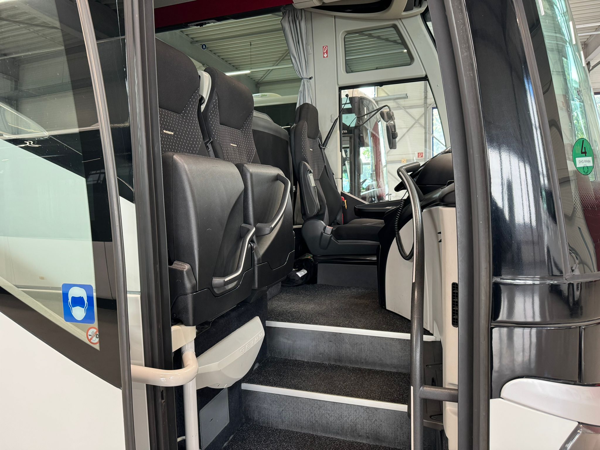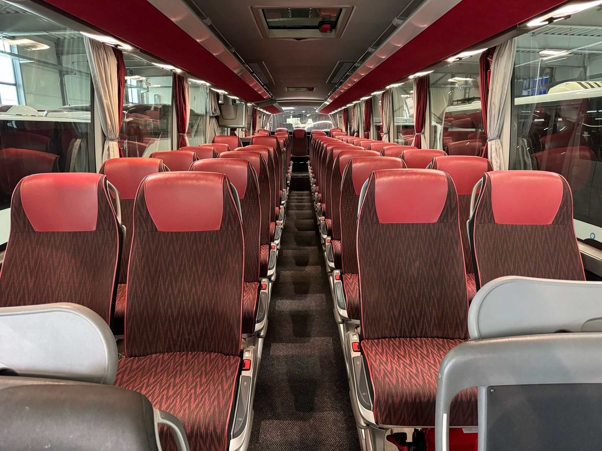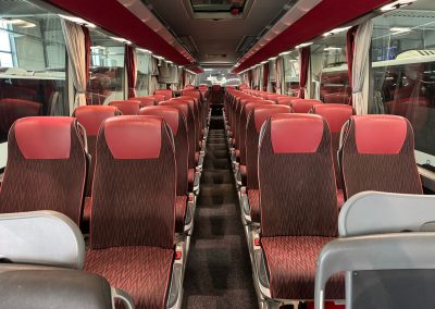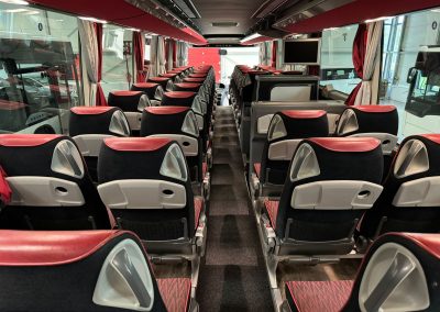 49+2+1 Schlafsitze mit Gurt, Klimaanlage, ABS, ASR, Retarder, Tempomat, Navigation, Hebe-Senkanlage, 2.Tank, elektr. Fensterheber, Zentralverriegelung, elektr. verstell- und beheizbare Außenspiegel, Frontscheibenrollo elektr., Webasto-Standheizung vorwählbar, Konvektorheizung, WC, Doppelverglasung mit Gardinen, Küche, Kühlschrank, Leselampen, Fußrasten, Klapptische, Düsenbelüftung, Hutablage, Serviceruftasten, CD-Wechsler/DVD, 2 x Video, 2 x Monitore, 2 elektr. Dachluken, Anhängerkupplung,